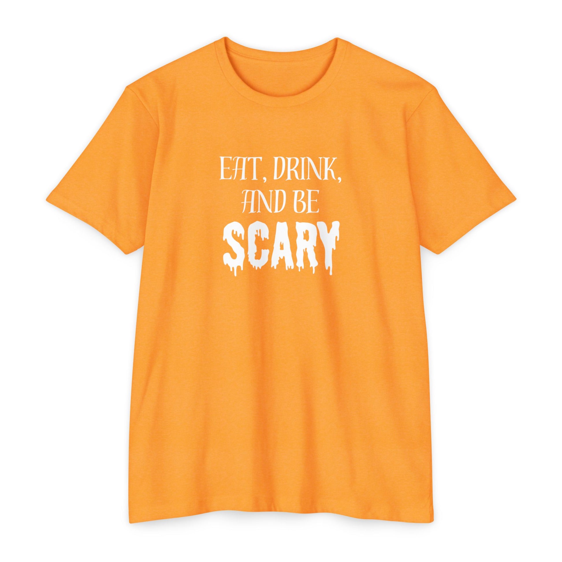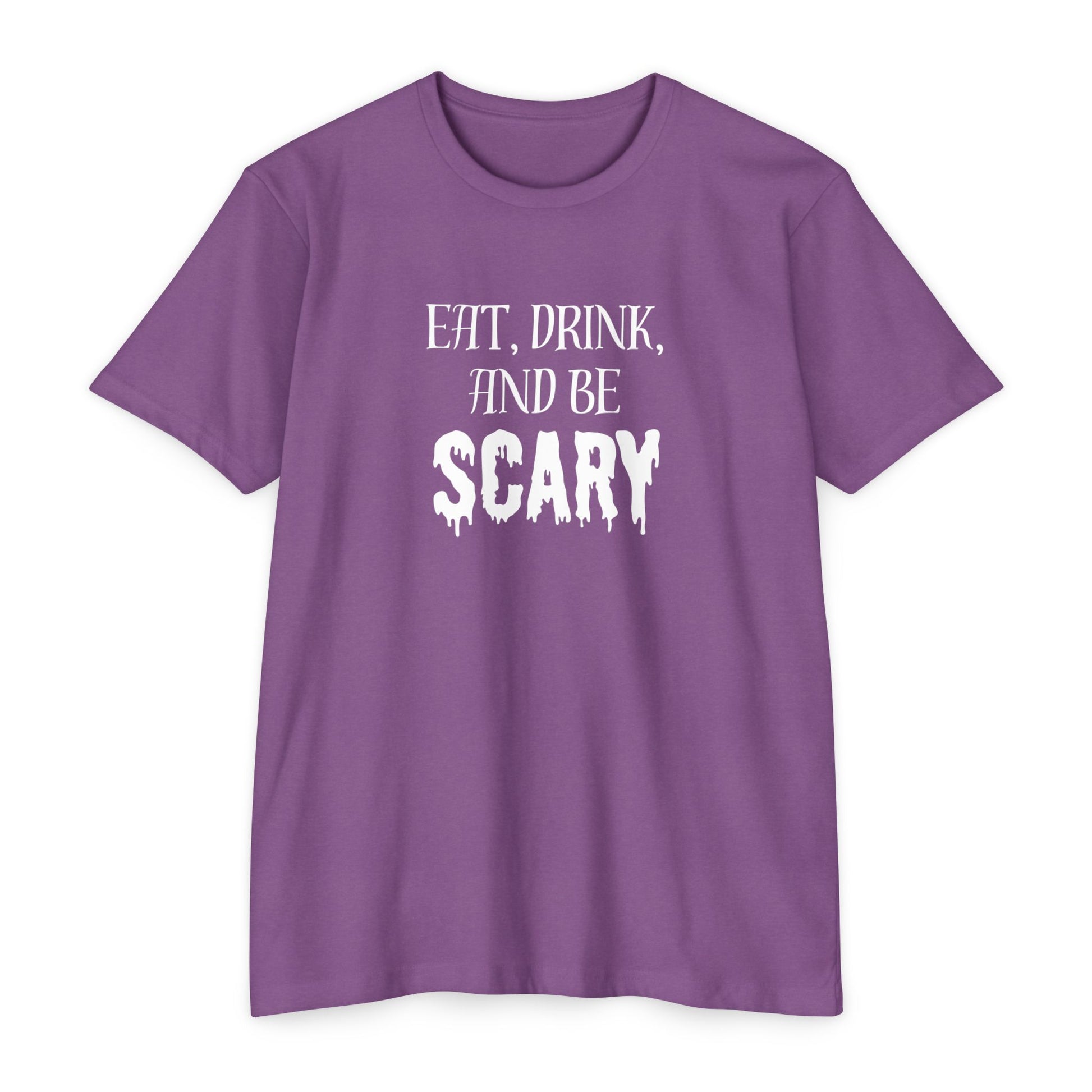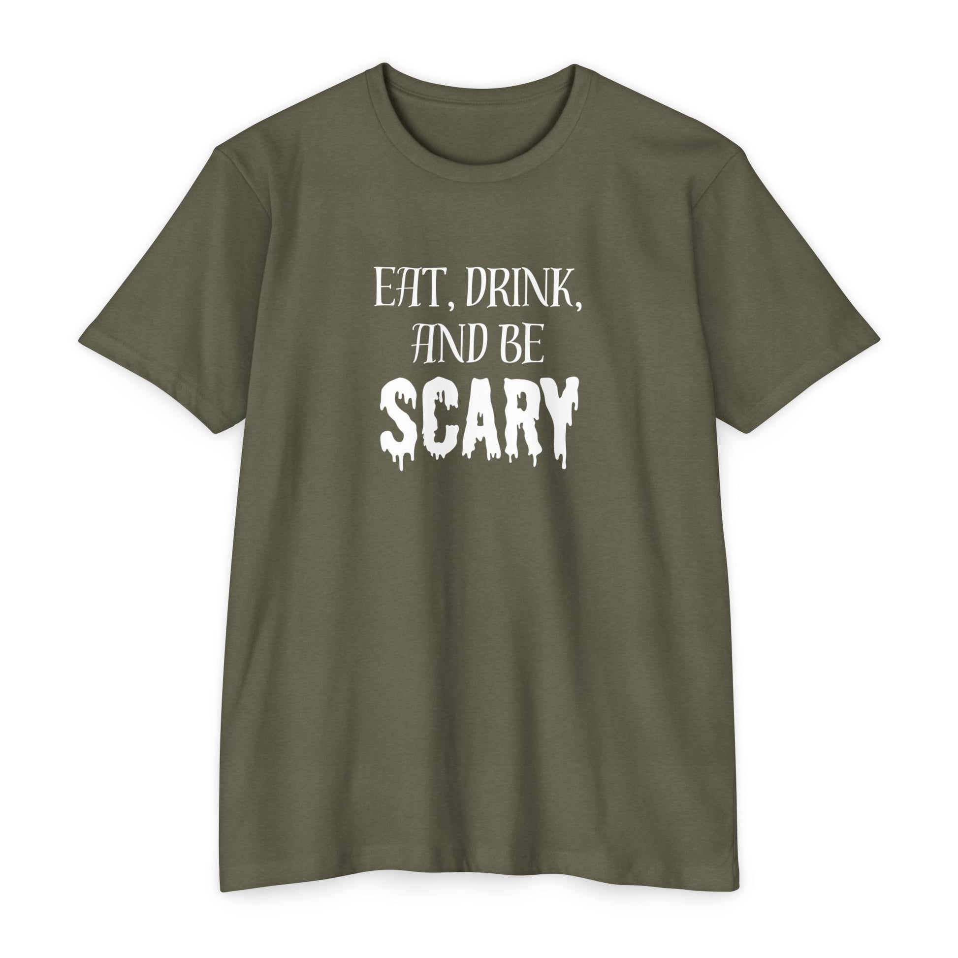 This Eat, Drink and Be Scary T-shirt is perfect for those who love the spooky Halloween season. The design evokes a fun and festive atmosphere, making it a great addition to any Halloween celebration or party. The unisex fit makes it suitable for anyone looking to show off their Halloween spirit.
