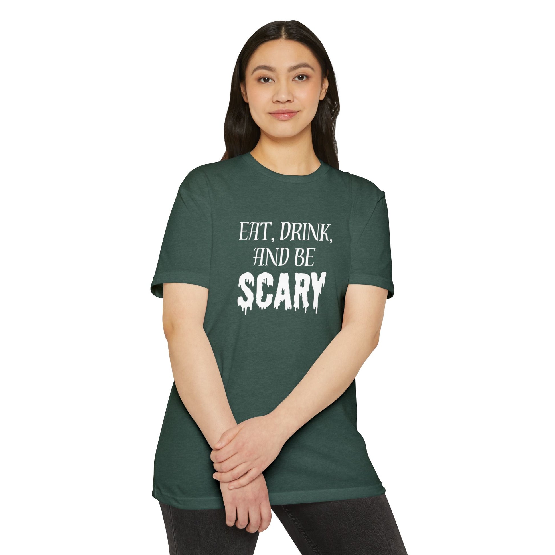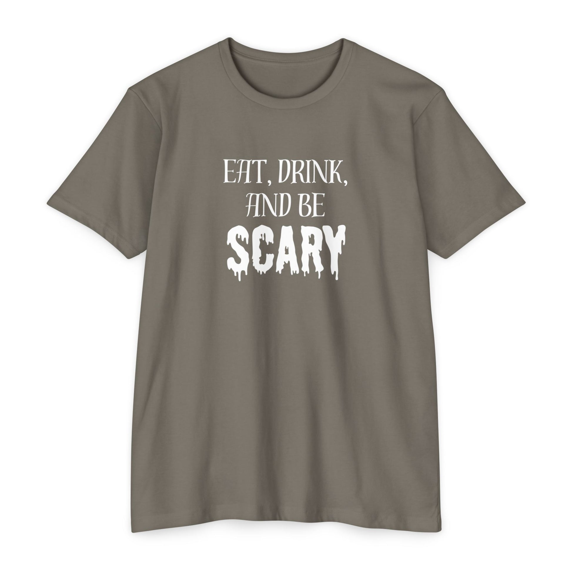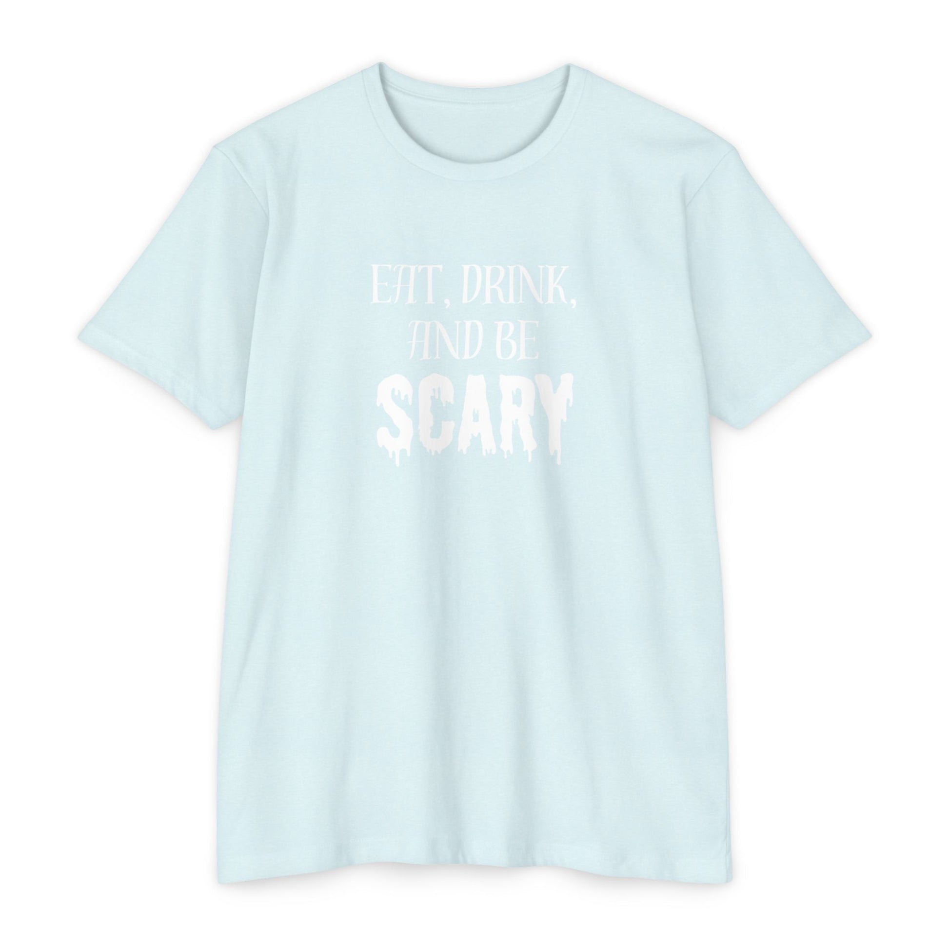 This Eat, Drink and Be Scary T-shirt is perfect for those who love the spooky Halloween season. The design evokes a fun and festive atmosphere, making it a great addition to any Halloween celebration or party. The unisex fit makes it suitable for anyone looking to show off their Halloween spirit.