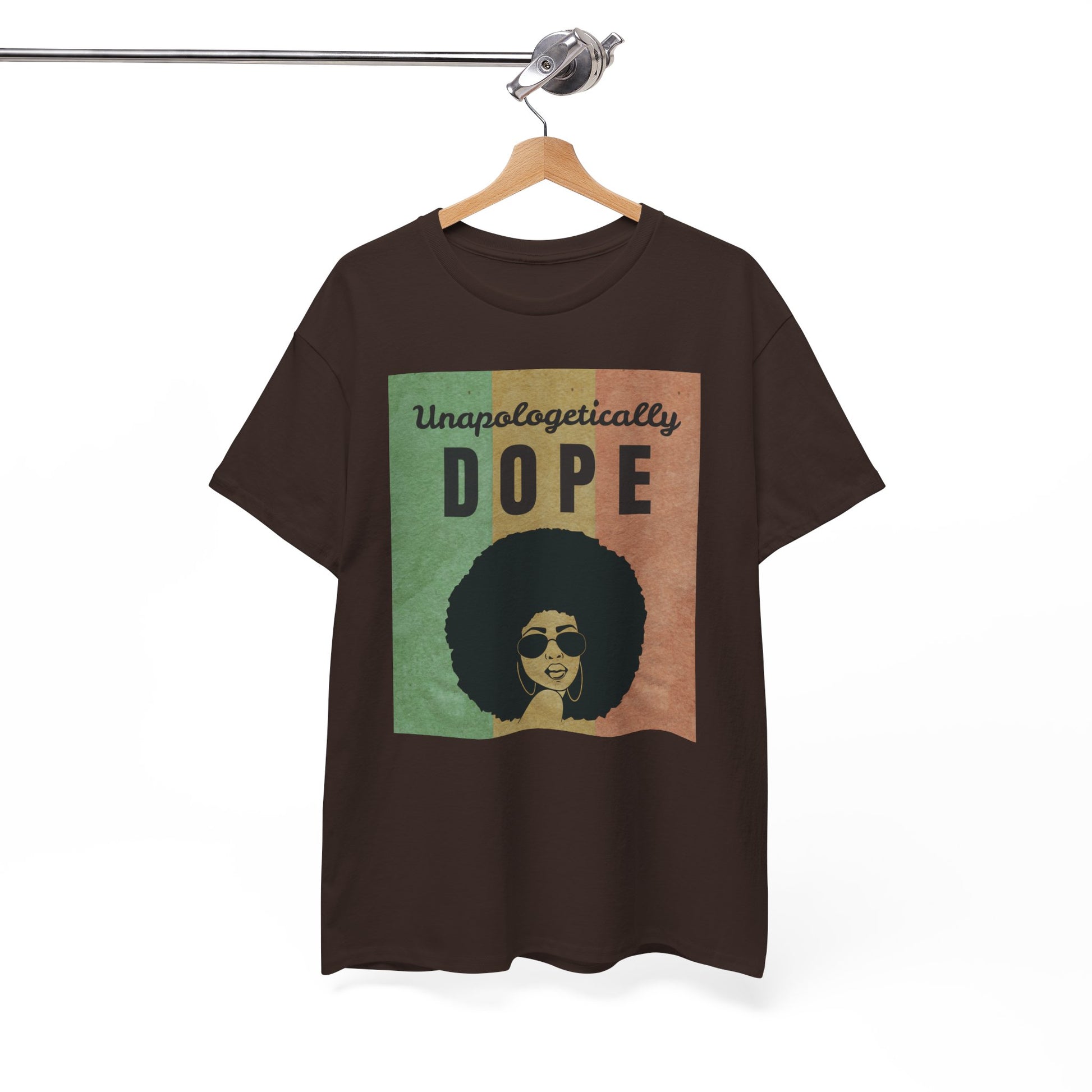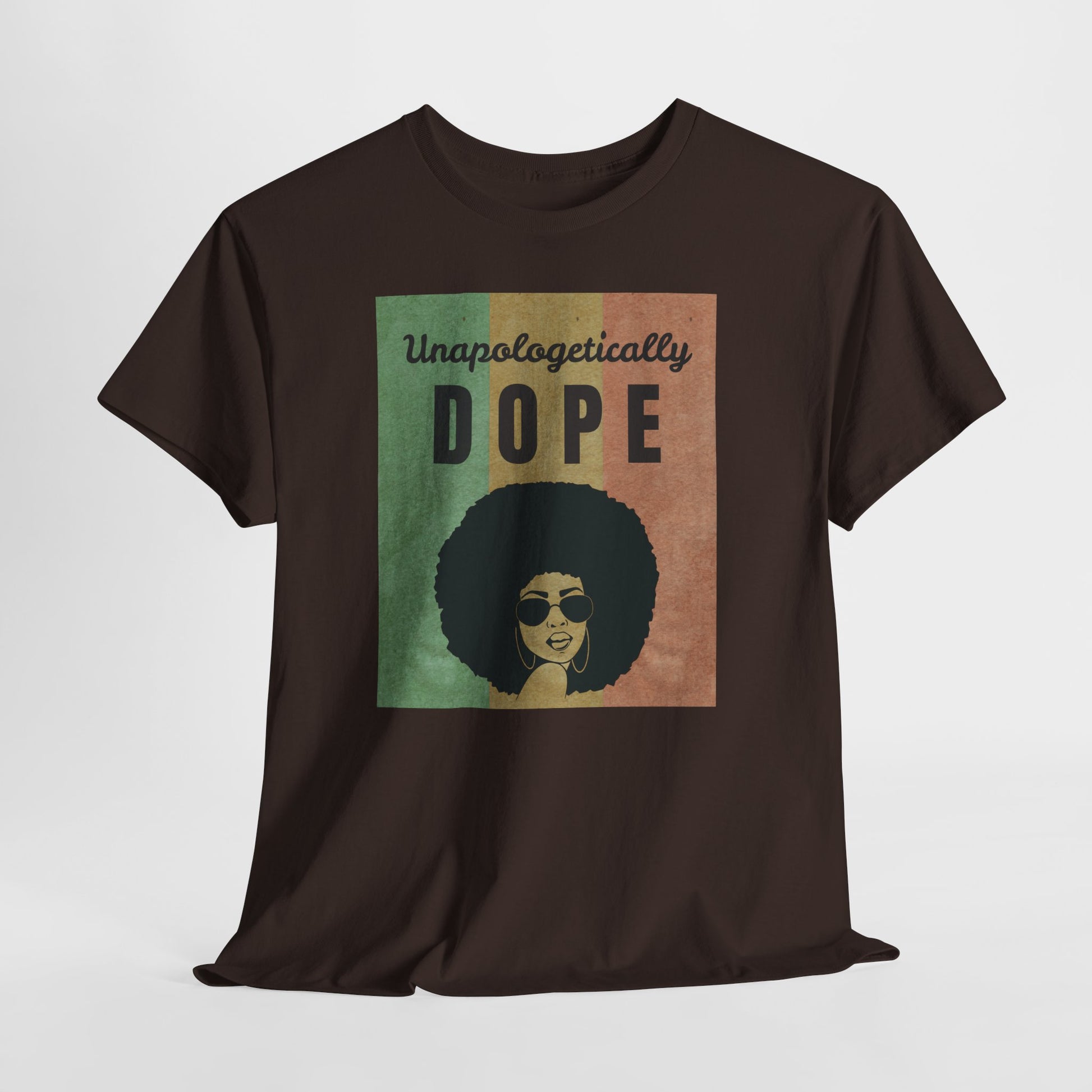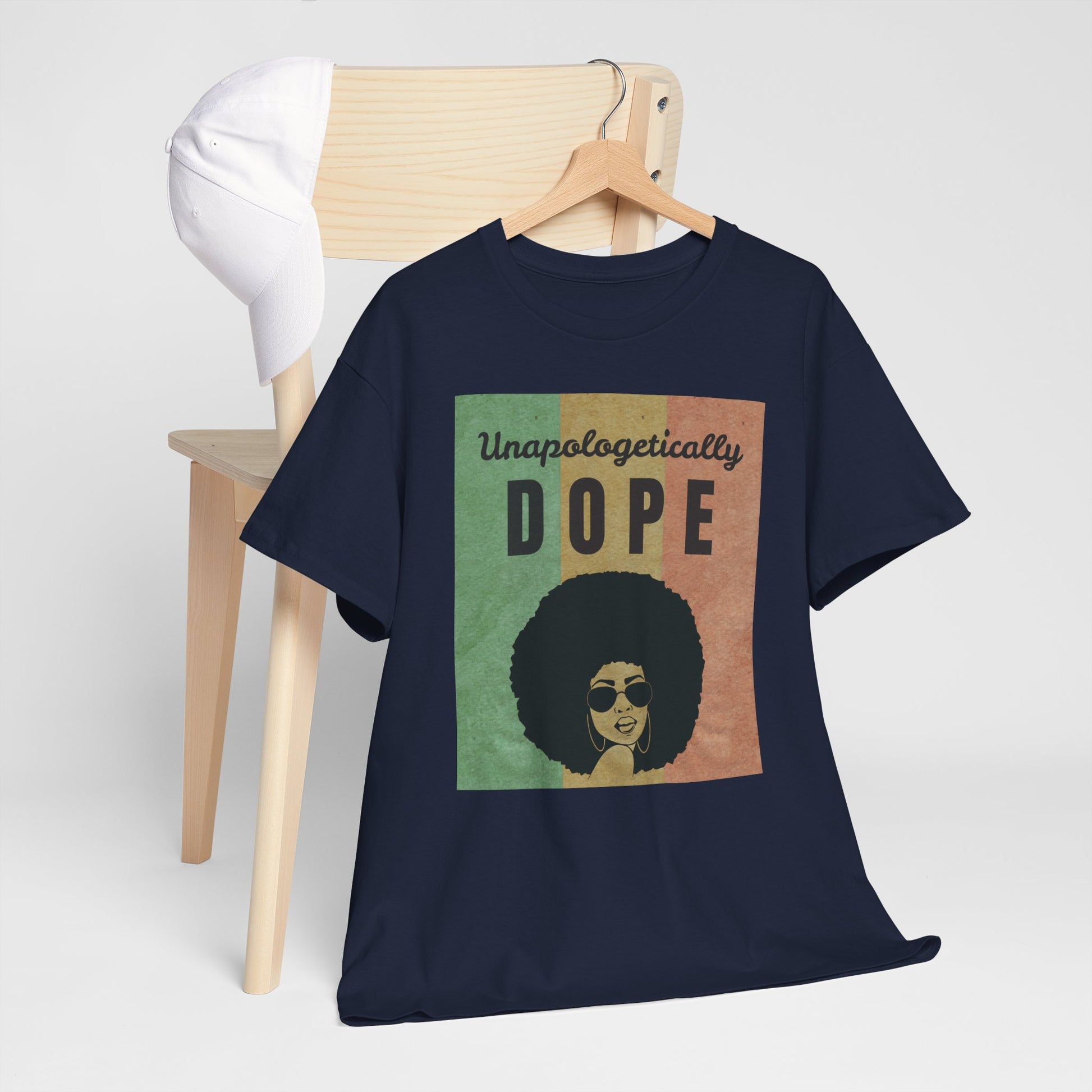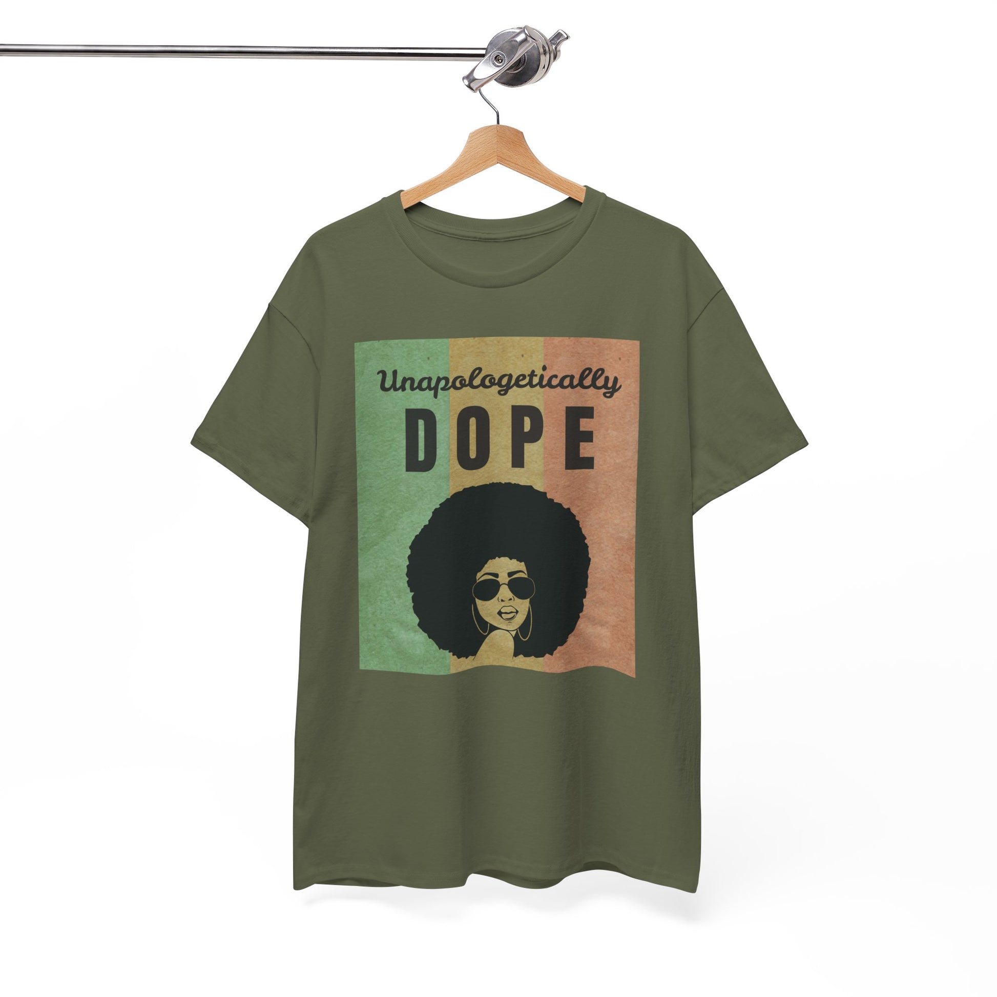 Unapologetically Dope T-Shirt for adults made with 100% cotton fabric, featuring a ribbed knit collar without seam and shoulder tape for added stability. This classic fit tee is perfect for those who appreciate strong, sustainable, durable materials for year-round comfort. T